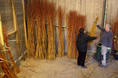 Il sera ensuite conditionné en botte, une partie le pied dans 20 cm d'eau, destiné à l'écorçage, et le reste à sécher pour obtenir l'osier brut.