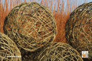 (ø 40cm) Tressage d’une vannerie en osier traité autoclave, torche à 3, clôture crocane bordure et tressage en entrelacs.